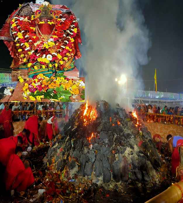 Maa Hingula is often associated with fire and is considered the cosmic mother who manifests as fire.
